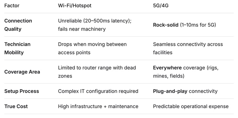 Summary (TL;DR): For AR remote support, 5G True AR Glasses beats Wi-Fi Only ones on every key metric: reliability, mobility, coverage, and total cost.