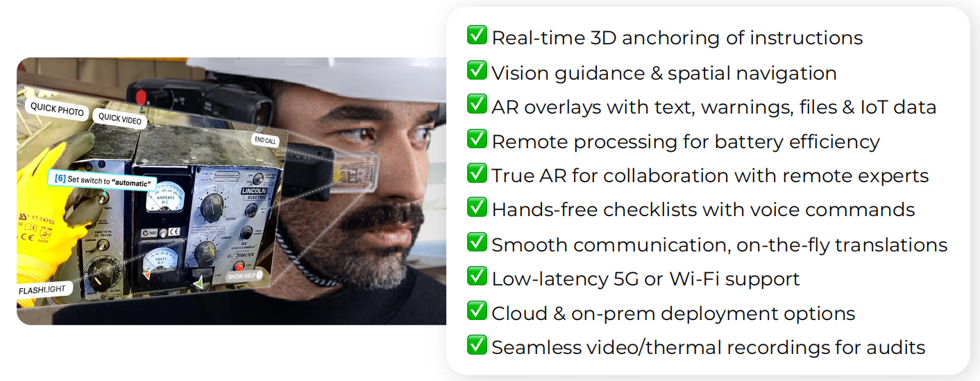 What it is: Step-by-step instructions anchored in the technicianâs real-world field of view (FOV), overlaid spatially on actual equipment.