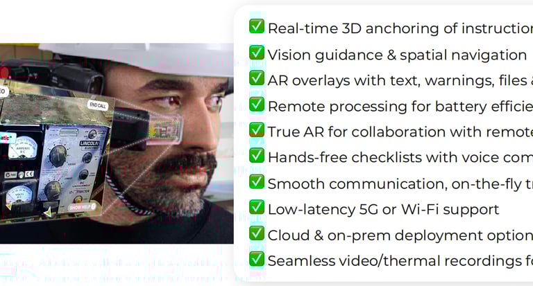 The combination of 3D workflow, 360° anchoring, live annotation, remote support, and video calls becomes incredibly powerful when paired with 5G True AR & MR Glassesâespecially for high-stakes industries like Oil & Gasâbecause it directly addresses some of the most critical challenges in field operations, safety, training, and cost-efficiency.